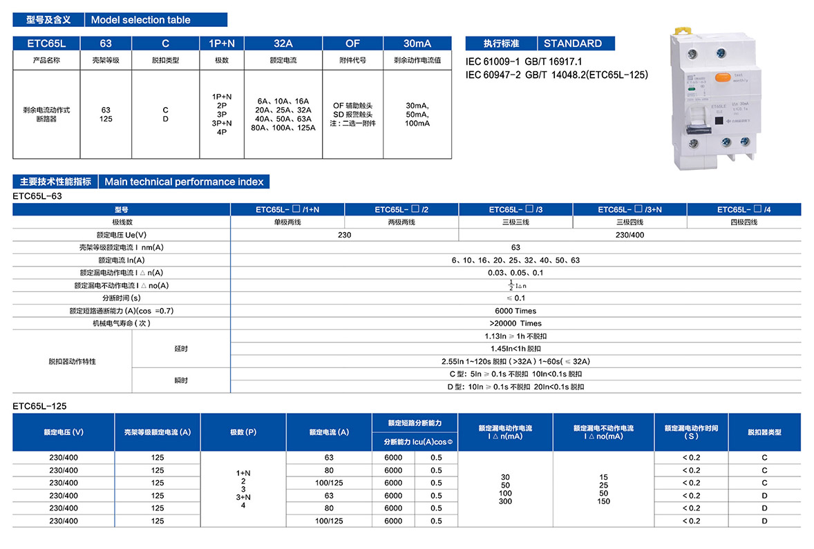 ETC65L系列小型漏電斷路器